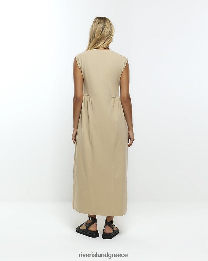 River Island ενδύματα καφέ γυναίκες μίντι φόρεμα plisse smock B6N8X4609