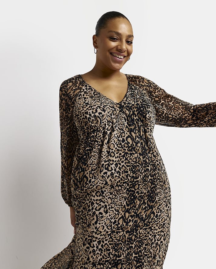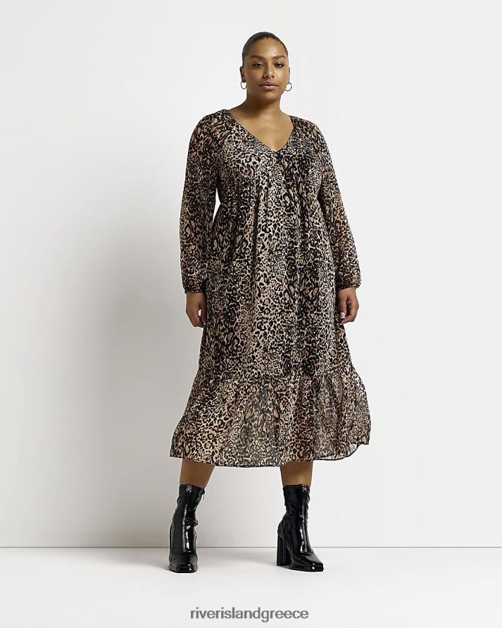 River Island ενδύματα καφέ γυναίκες συν animal print smock μίντι φόρεμα B6N8X2254