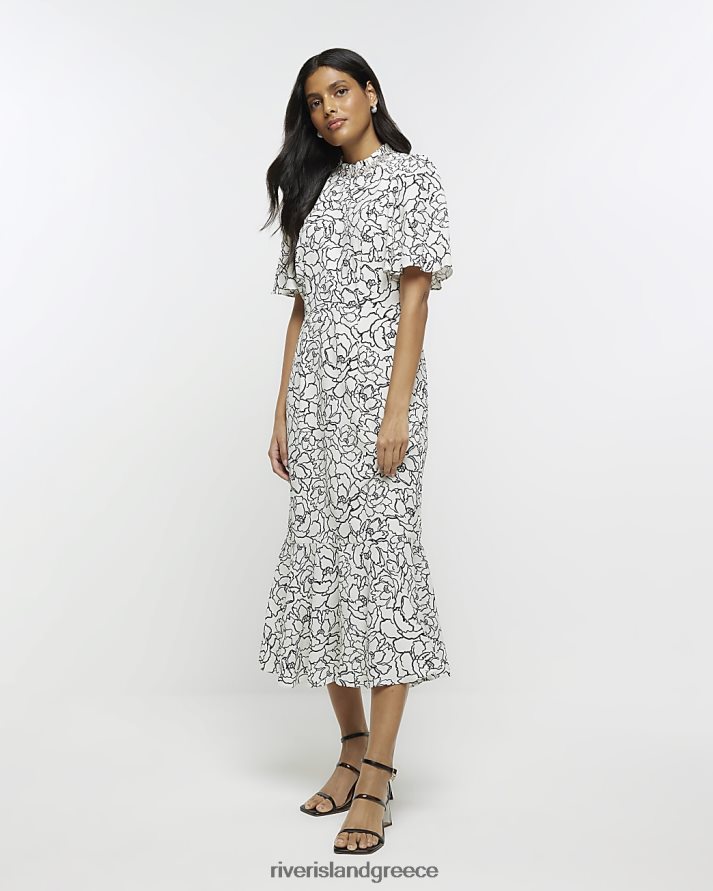River Island ενδύματα κρέμα γυναίκες μίντι φόρεμα με φλοράλ διακοσμημένο swing B6N8X4428