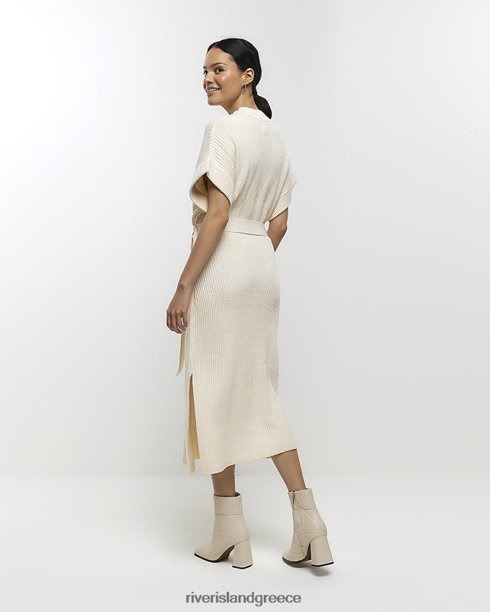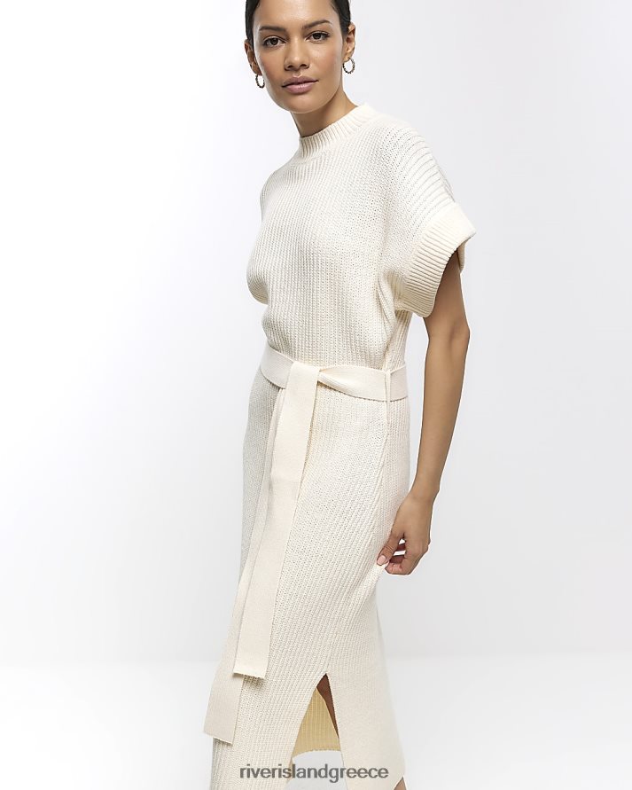 River Island ενδύματα κρέμα γυναίκες Μίντι φόρεμα με ψηλό λαιμό με ζώνη B6N8X707