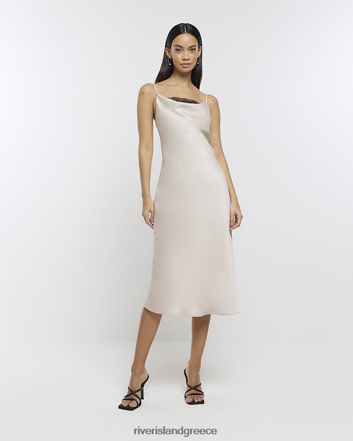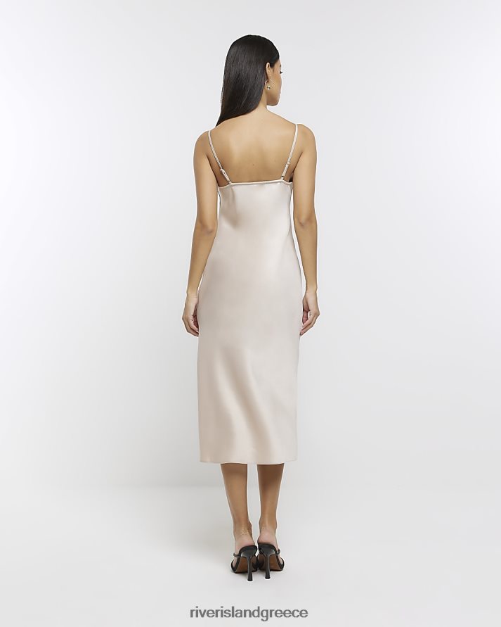 River Island ενδύματα κρέμα γυναίκες μίντι φόρεμα σατέν με λαιμόκοψη B6N8X1664