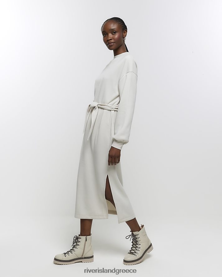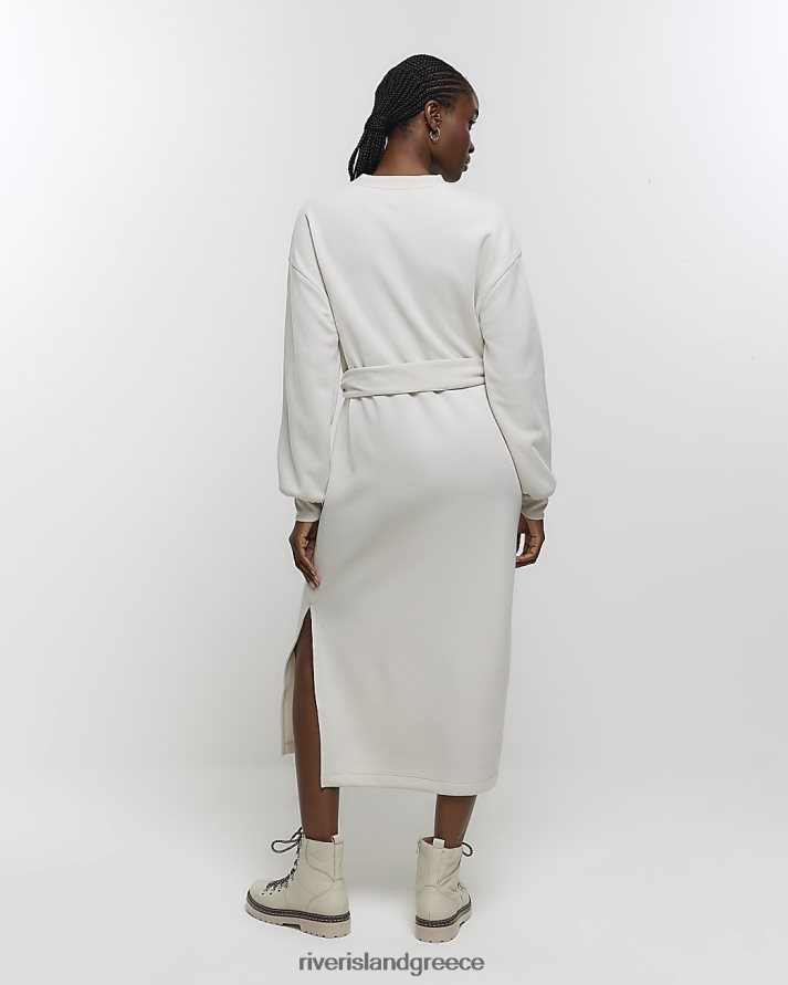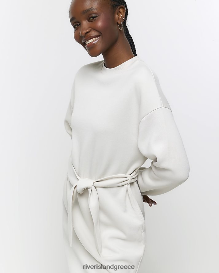River Island ενδύματα κρέμα γυναίκες μίντι φόρεμα φούτερ με γραβάτα ζέρσεϊ B6N8X746