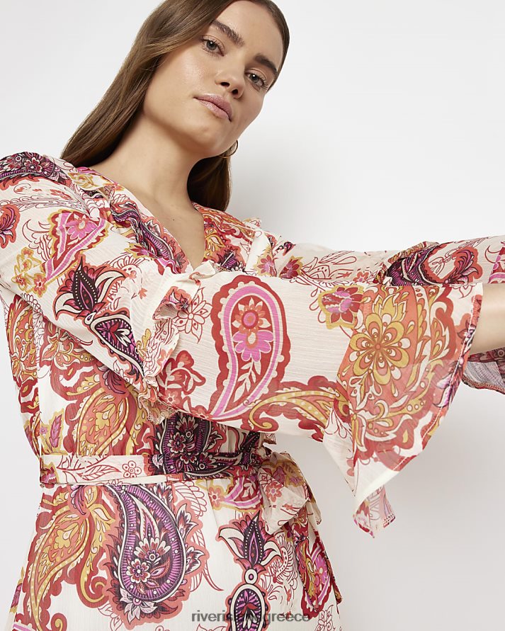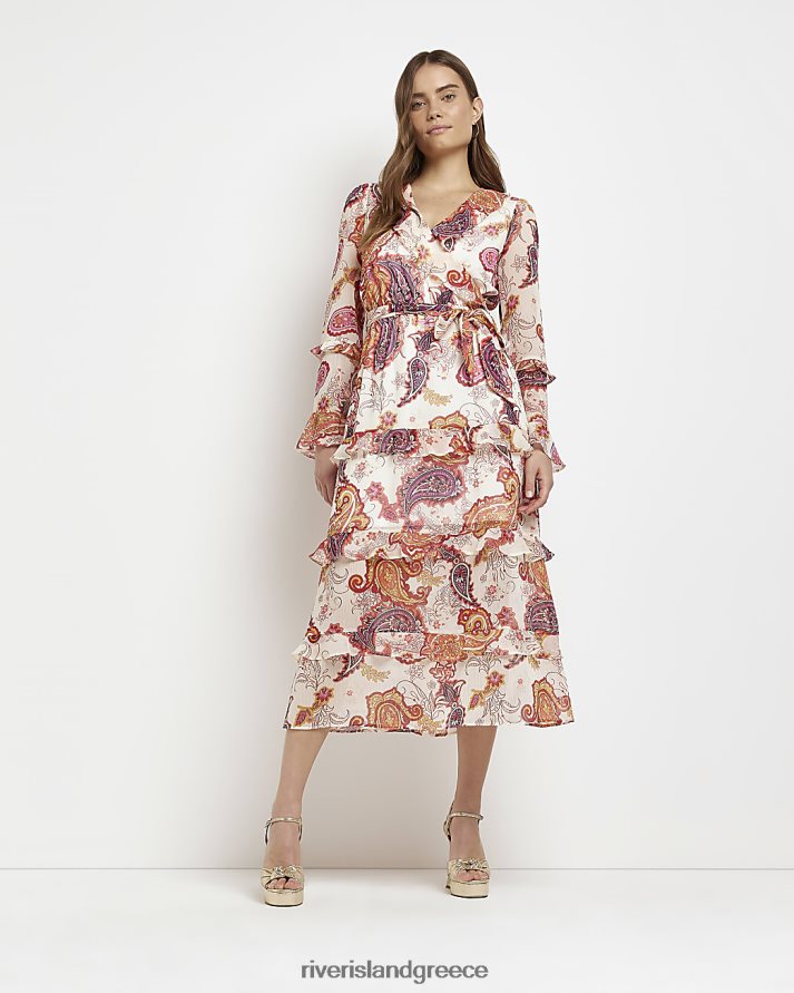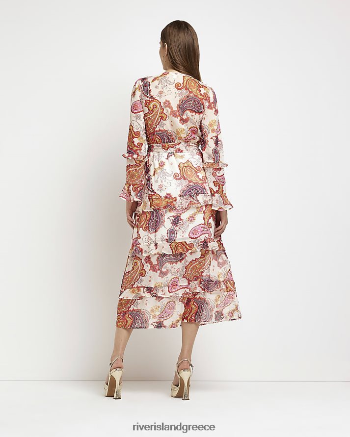 River Island ενδύματα κρέμα γυναίκες μακρυμάνικο μίντι φόρεμα paisley B6N8X2086