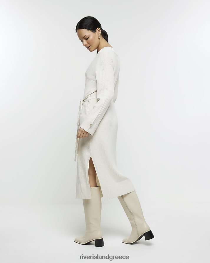 River Island ενδύματα κρέμα γυναίκες Πλεκτό μίντι φόρεμα με ζώνες B6N8X3772