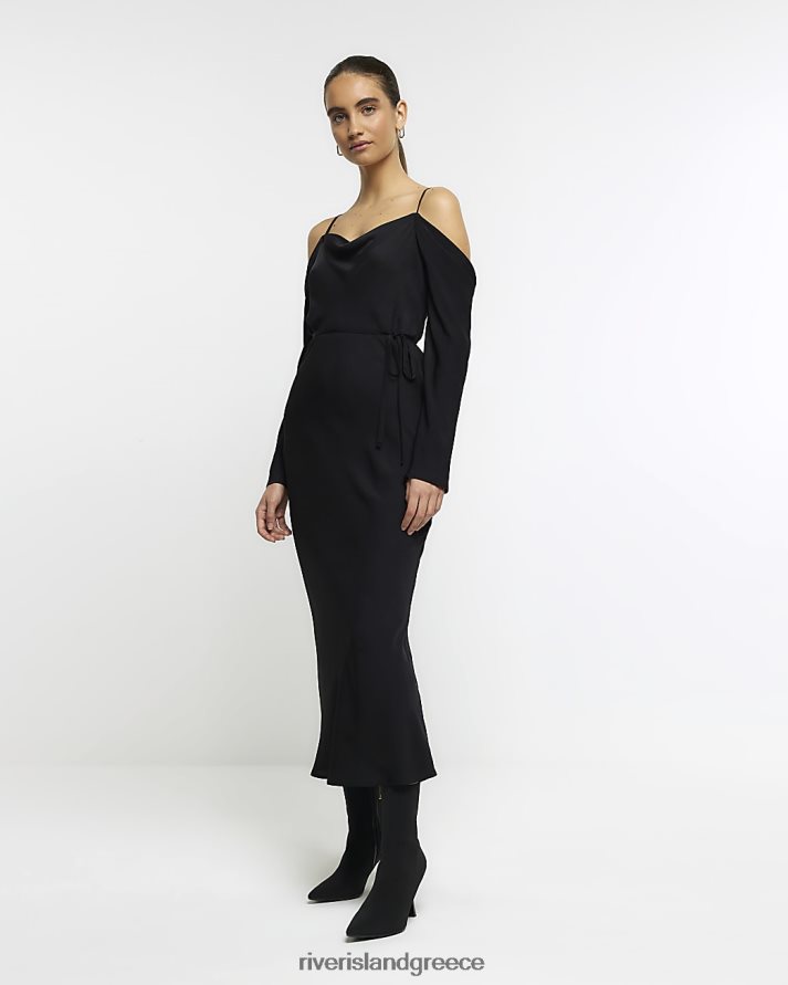 River Island ενδύματα μαύρος γυναίκες κρύο midi φόρεμα με ολίσθηση στους ώμους B6N8X3901