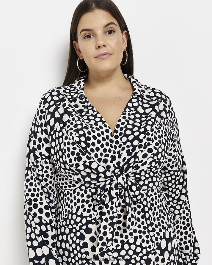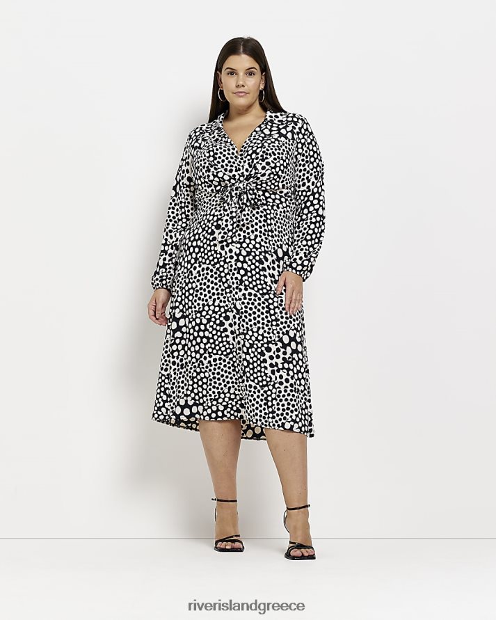 River Island ενδύματα μαύρος γυναίκες μίντι πουκάμισο φόρεμα με μπροστινό κόμπο B6N8X5197