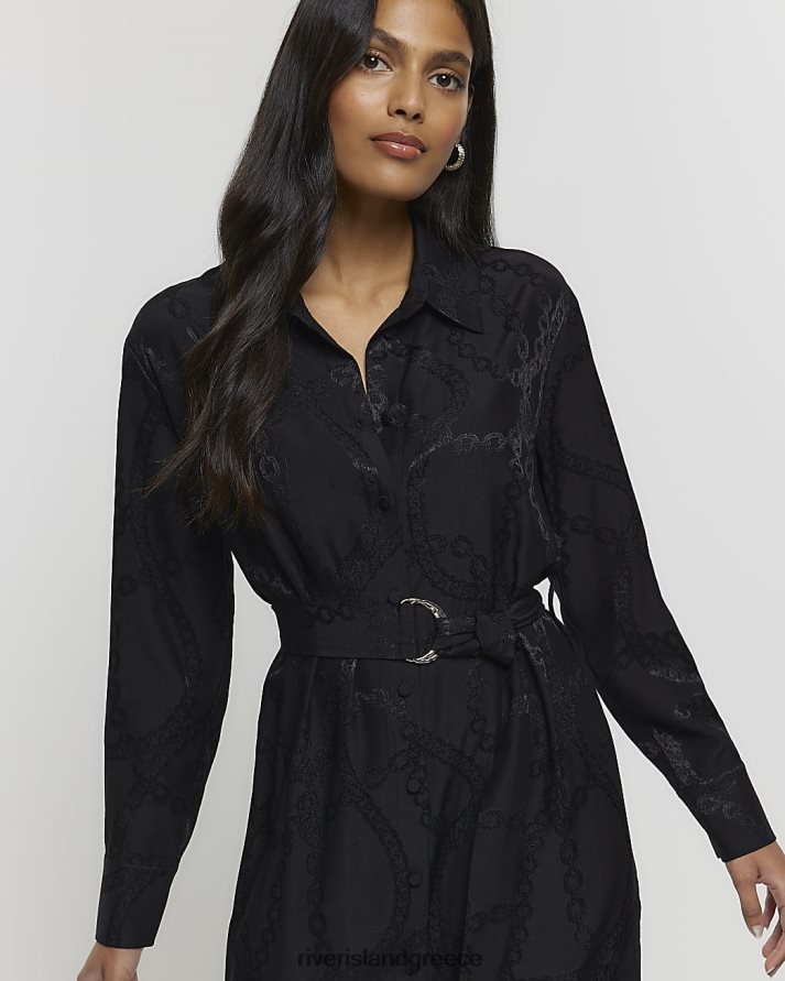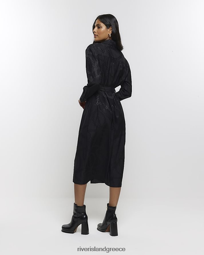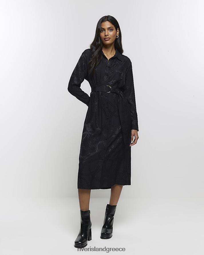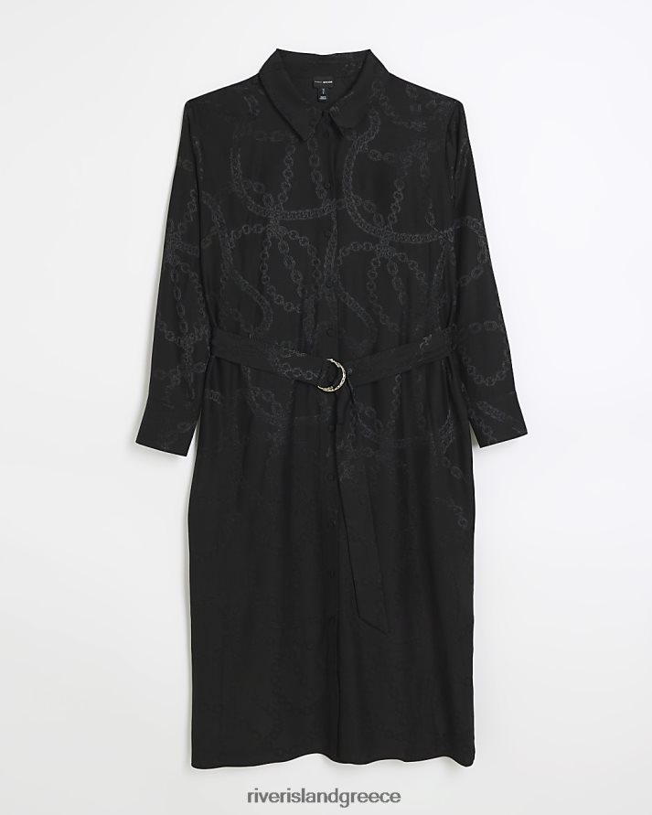 River Island ενδύματα μαύρος γυναίκες μίντι πουκάμισο φόρεμα με στάμπα με αλυσίδα B6N8X3882