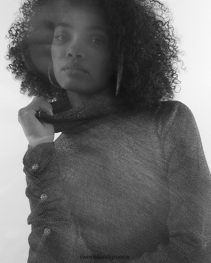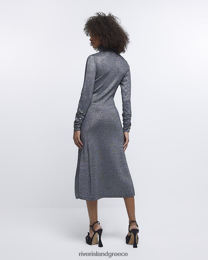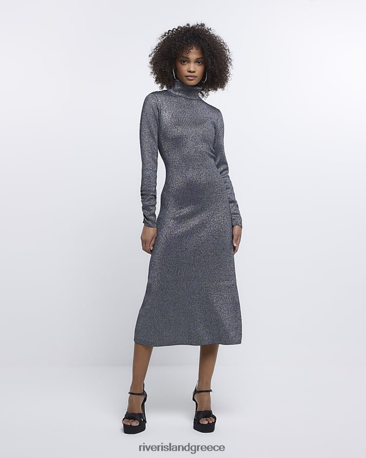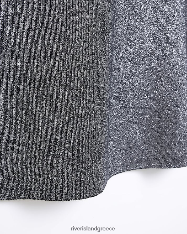 River Island ενδύματα μαύρος γυναίκες μίντι φόρεμα μεταλλικό πλεκτό μακρυμάνικο B6N8X4000