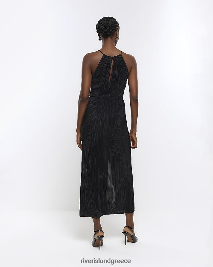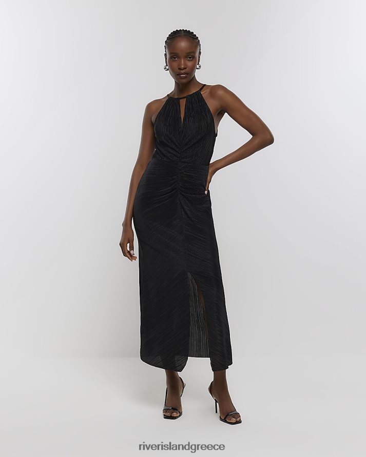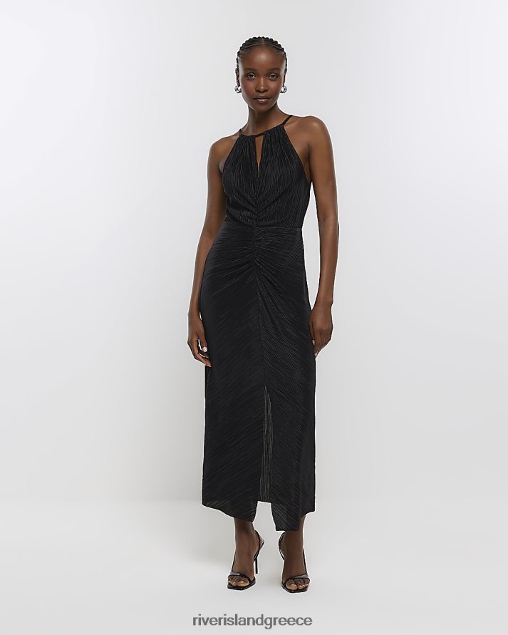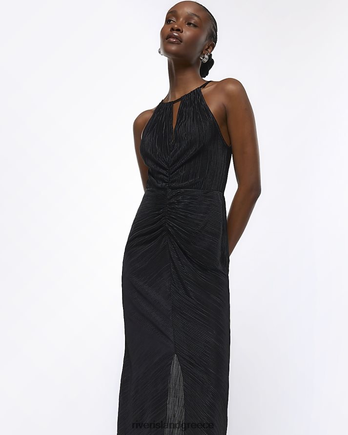 River Island ενδύματα μαύρος γυναίκες Μίντι φόρεμα με λεπτομέρεια plisse ruched bodycon B6N8X1253