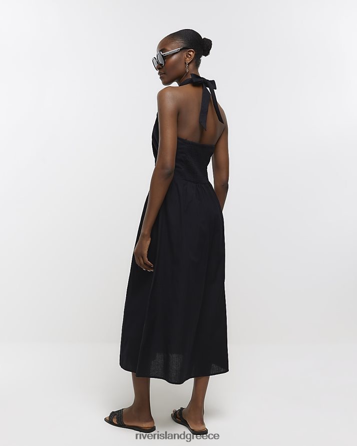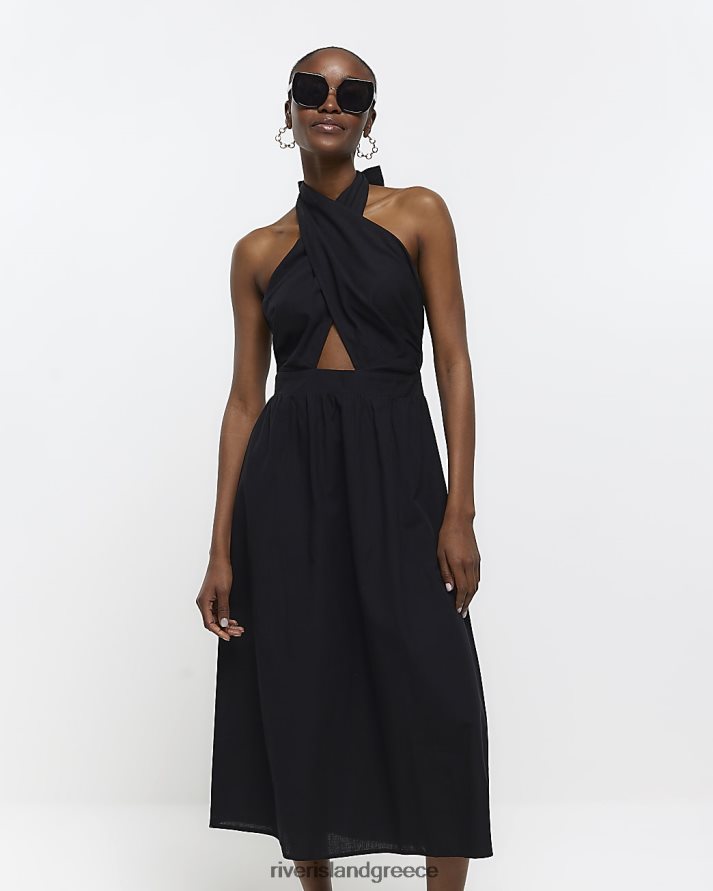 River Island ενδύματα μαύρος γυναίκες Μίντι φόρεμα με λινό λαιμόκοψη B6N8X1522