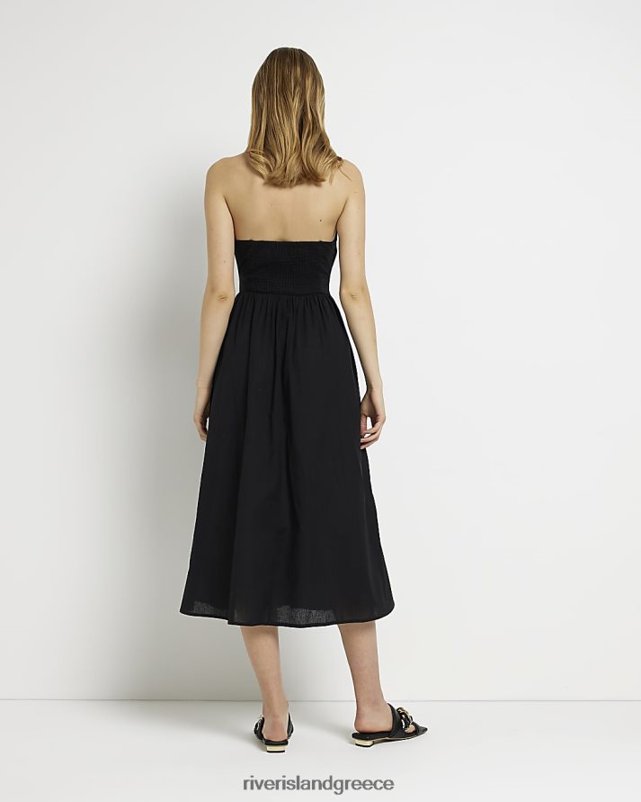 River Island ενδύματα μαύρος γυναίκες Μίντι φόρεμα με λινό λαιμόκοψη B6N8X2141