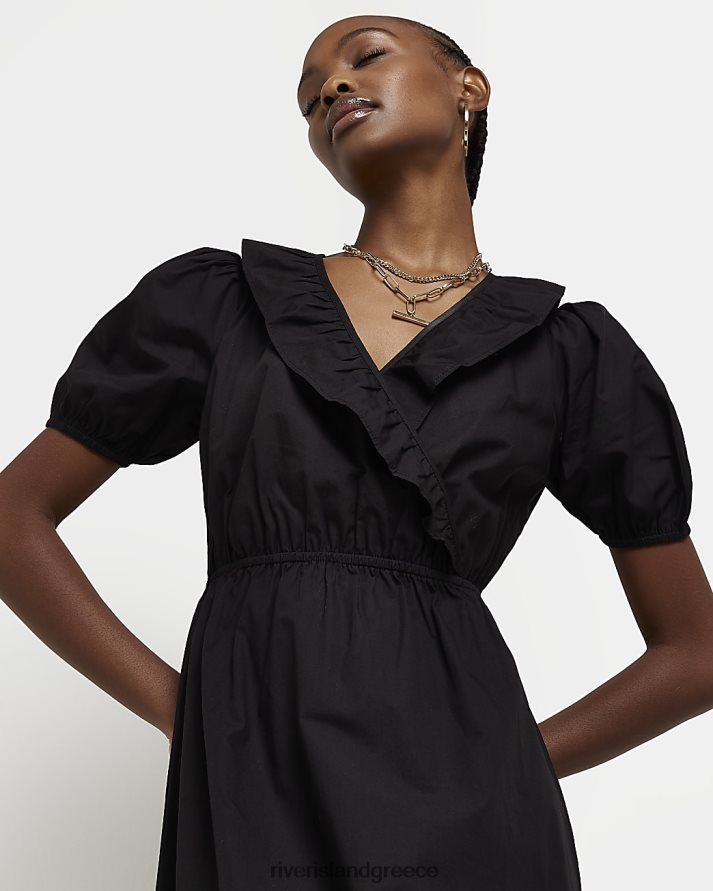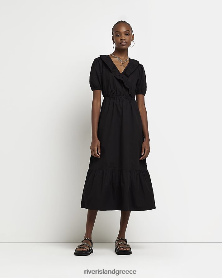 River Island ενδύματα μαύρος γυναίκες μίντι φόρεμα με ριπ μανίκι B6N8X1691