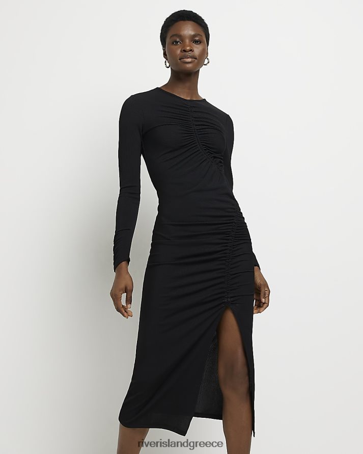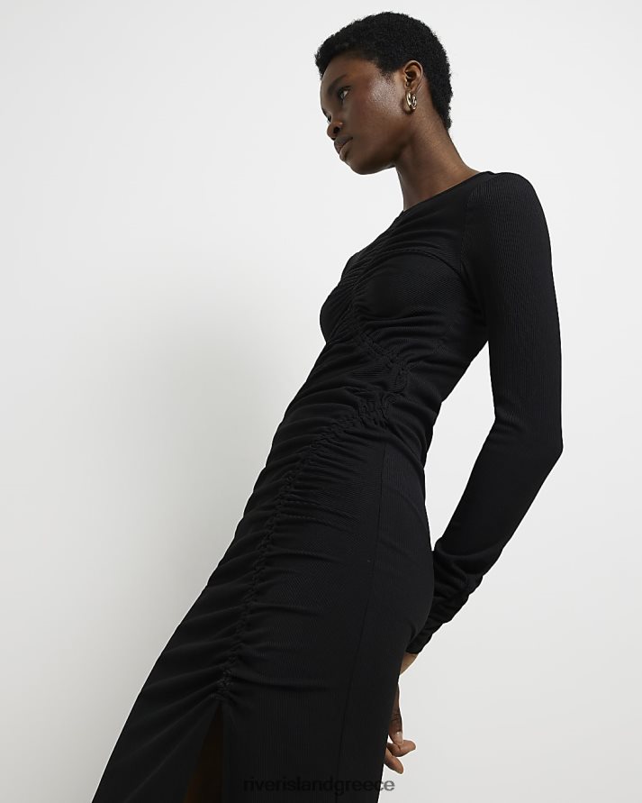 River Island ενδύματα μαύρος γυναίκες μίντι φόρεμα με ρουχ bodycon B6N8X2021