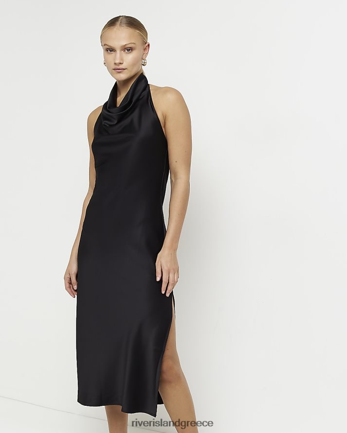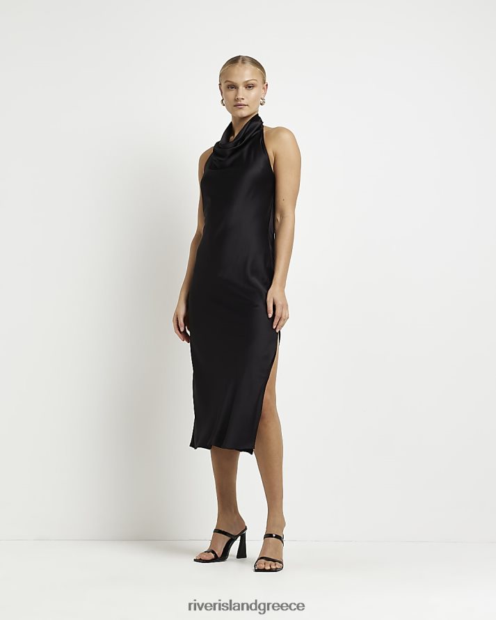 River Island ενδύματα μαύρος γυναίκες μίντι φόρεμα με σατέν λαιμόκοψη B6N8X1939