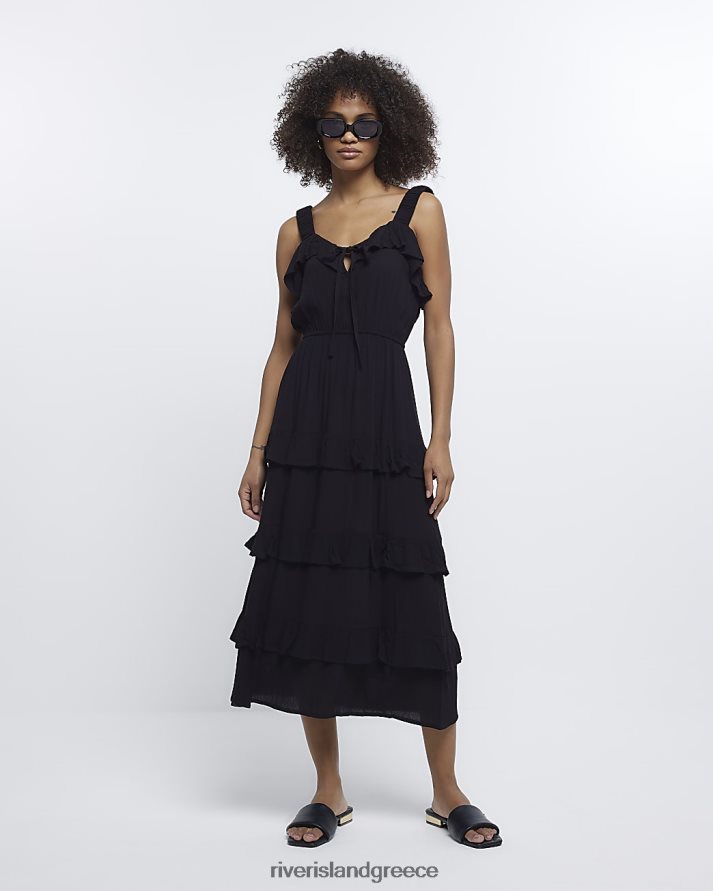 River Island ενδύματα μαύρος γυναίκες μίντι φόρεμα με στρώσεις B6N8X1704