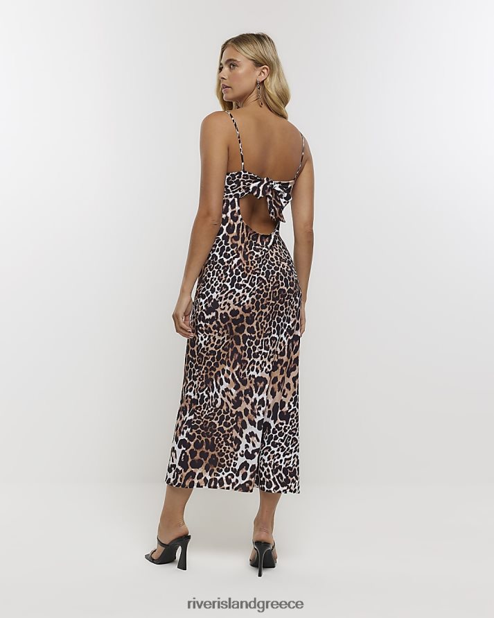 River Island ενδύματα μαύρος γυναίκες μίντι φόρεμα με φιόγκο με animal print slip B6N8X1330