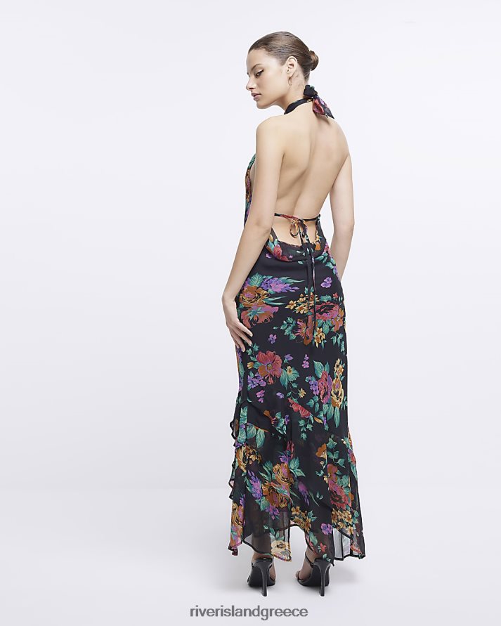 River Island ενδύματα μαύρος γυναίκες Μίντι φόρεμα με φλοράλ λαιμόκοψη B6N8X4756