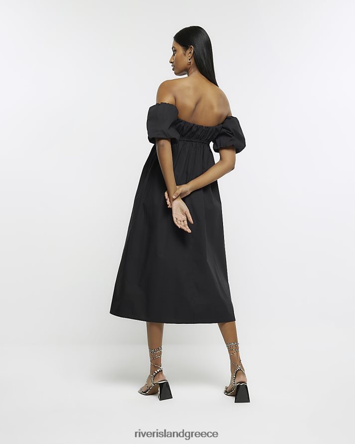 River Island ενδύματα μαύρος γυναίκες μίντι φόρεμα μπαρντό B6N8X919