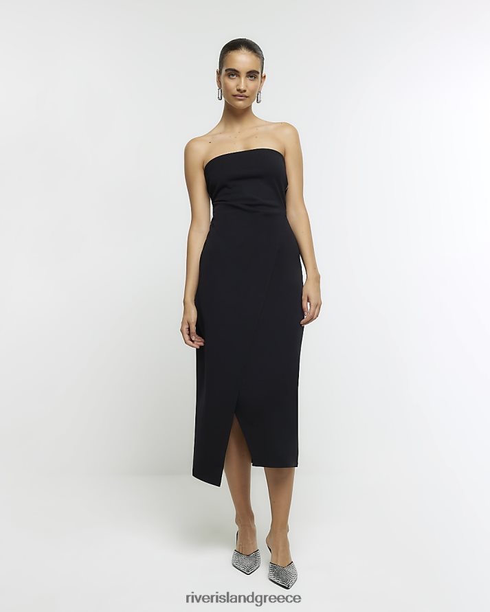 River Island ενδύματα μαύρος γυναίκες μίντι φόρεμα bandeau wrap B6N8X3743