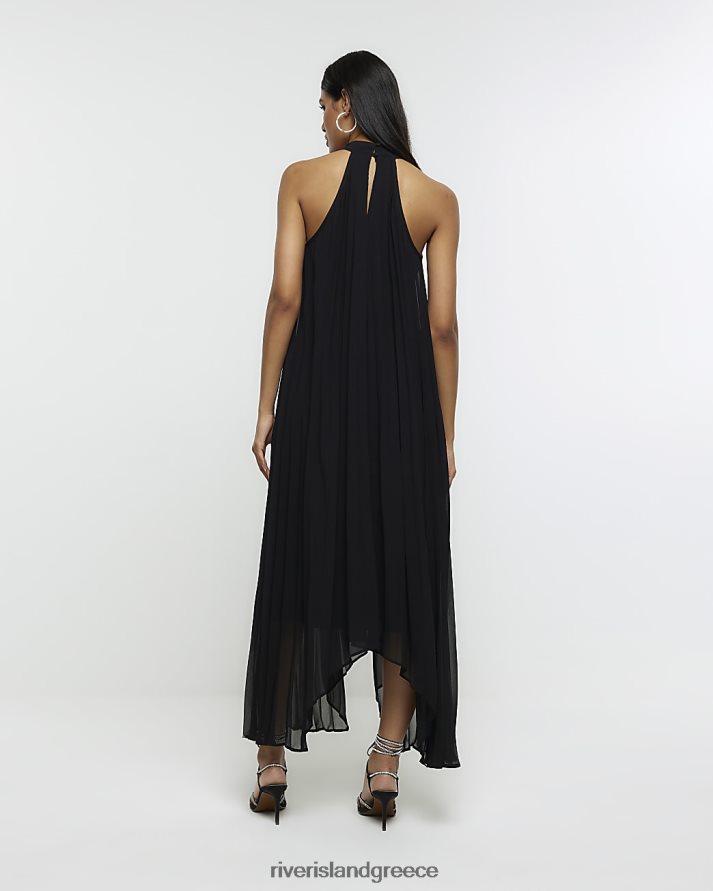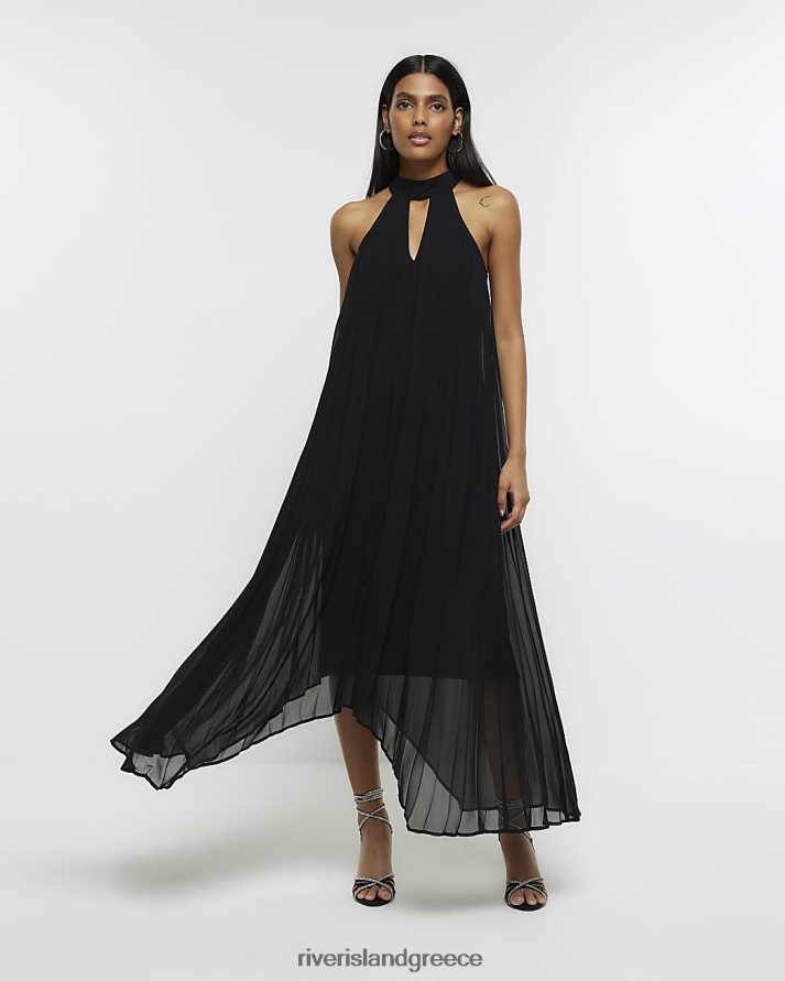 River Island ενδύματα μαύρος γυναίκες μίντι φόρεμα plisse choker slip B6N8X852