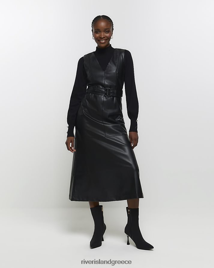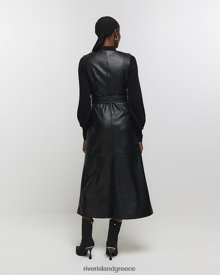 River Island ενδύματα μαύρος γυναίκες μίντι φόρεμα swing με ψεύτικο δέρμα B6N8X81