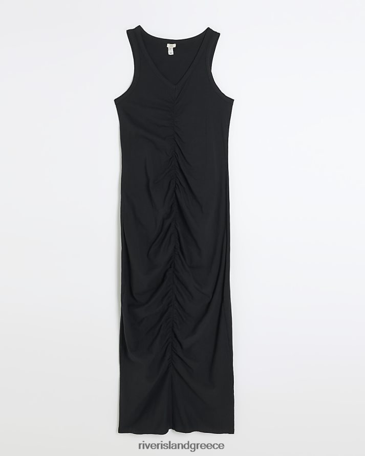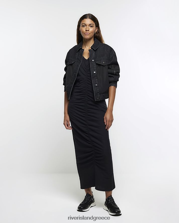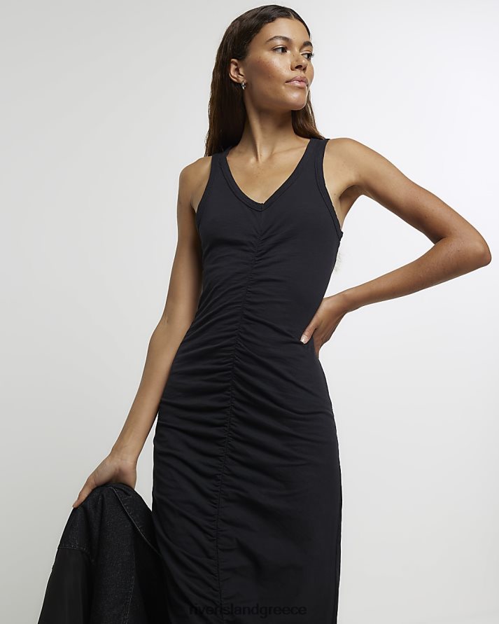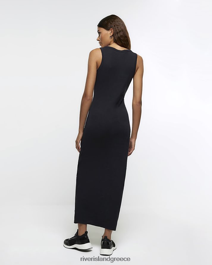 River Island ενδύματα μαύρος γυναίκες μπροστινό αμάνικο μίντι φόρεμα B6N8X4079