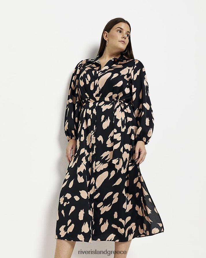 River Island ενδύματα μαύρος γυναίκες συν σατέν μίντι πουκάμισο φόρεμα B6N8X5182