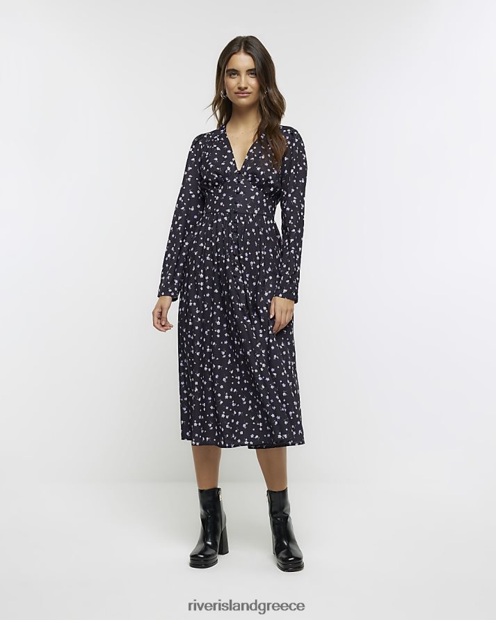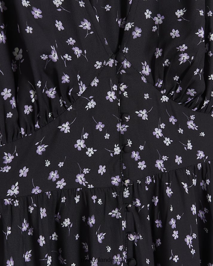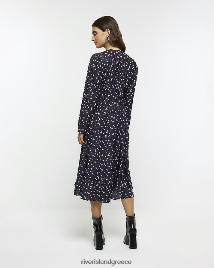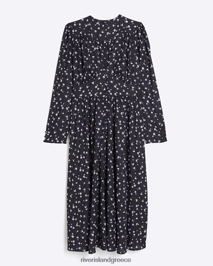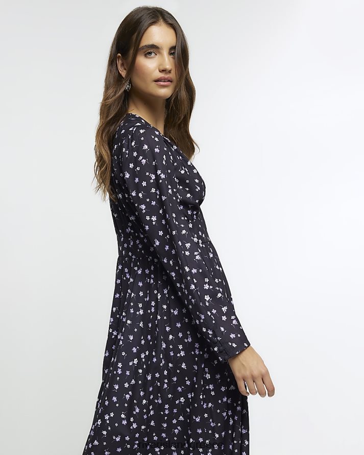 River Island ενδύματα μαύρος γυναίκες φλοράλ μακρυμάνικο μίντι φόρεμα με κούνια B6N8X4013