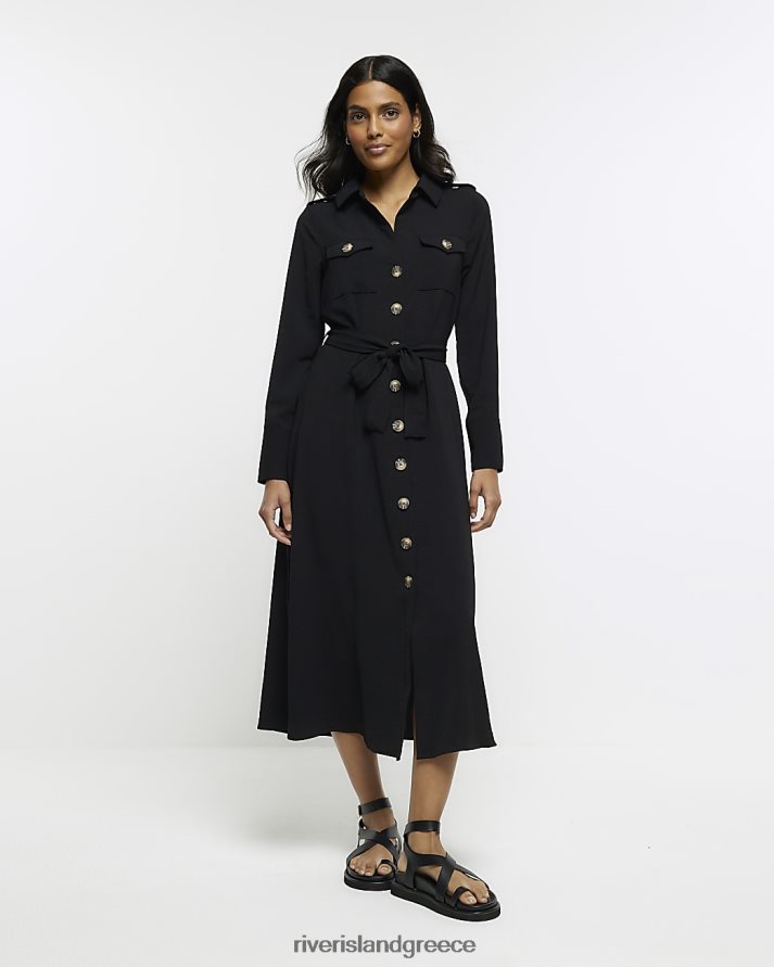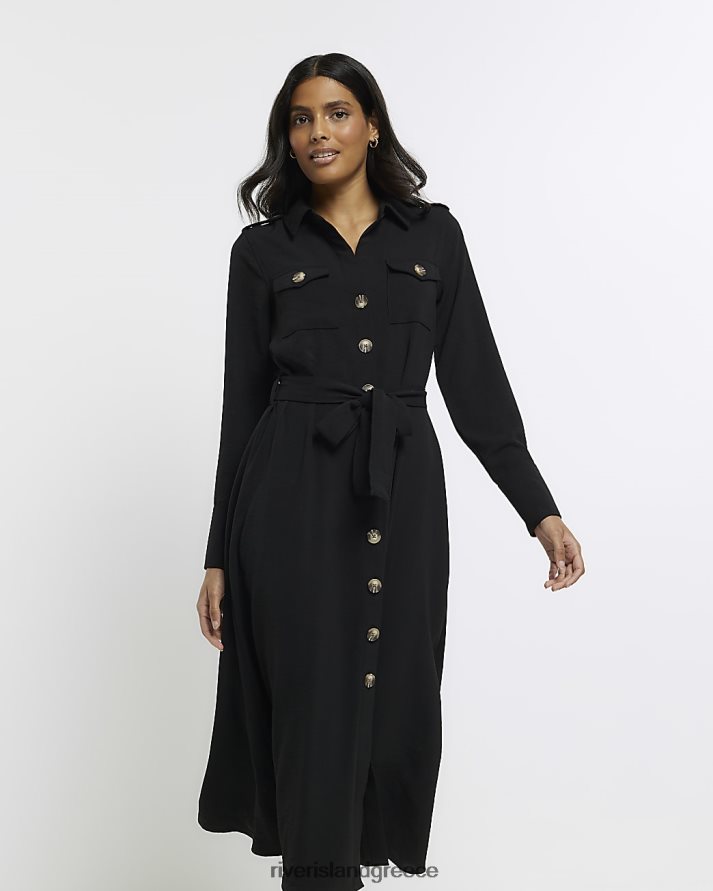 River Island ενδύματα μαύρος γυναίκες χρηστικό φόρεμα μίντι πουκάμισο με ζώνη B6N8X206