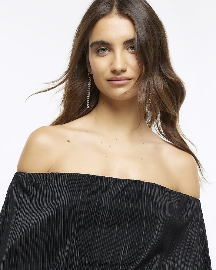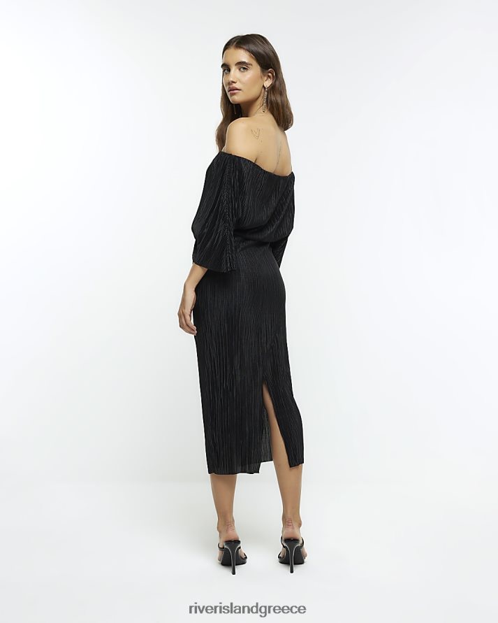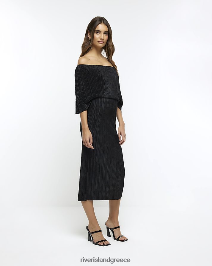 River Island ενδύματα μαύρος γυναίκες midi φόρεμα bardot drape plisse B6N8X807