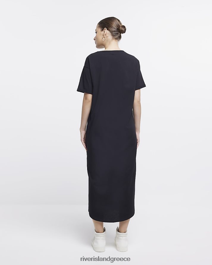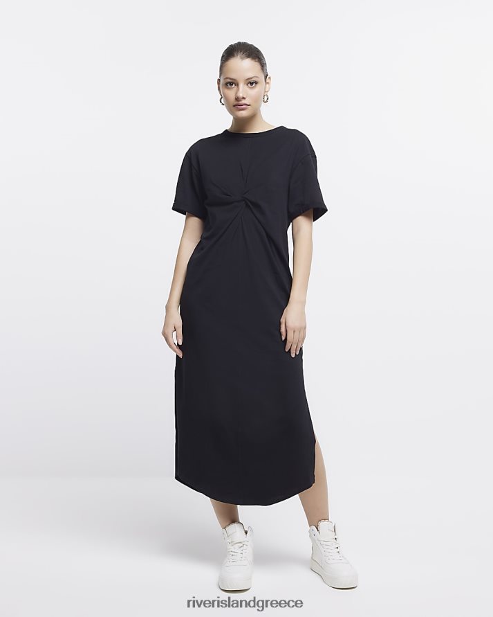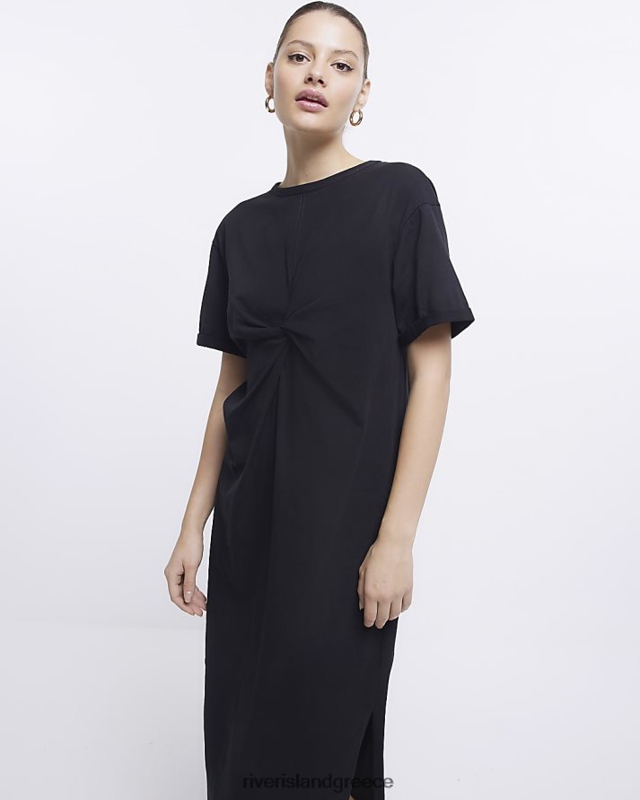 River Island ενδύματα μαύρος γυναίκες twist λεπτομέρεια t-shirt midi φόρεμα B6N8X281
