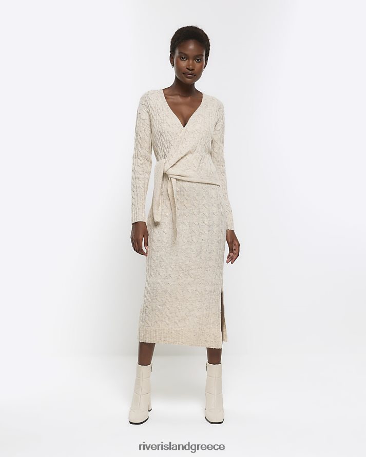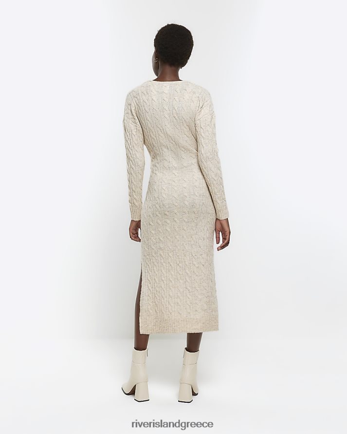 River Island ενδύματα μπεζ γυναίκες μίντι φόρεμα από πλεκτό καλώδιο B6N8X4418