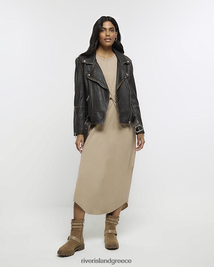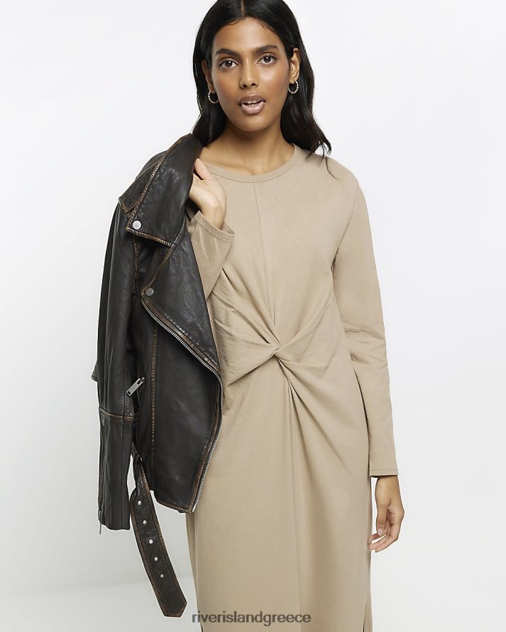 River Island ενδύματα μπεζ γυναίκες μίντι φόρεμα μακρυμάνικο μπλουζάκι με κόμπο B6N8X280