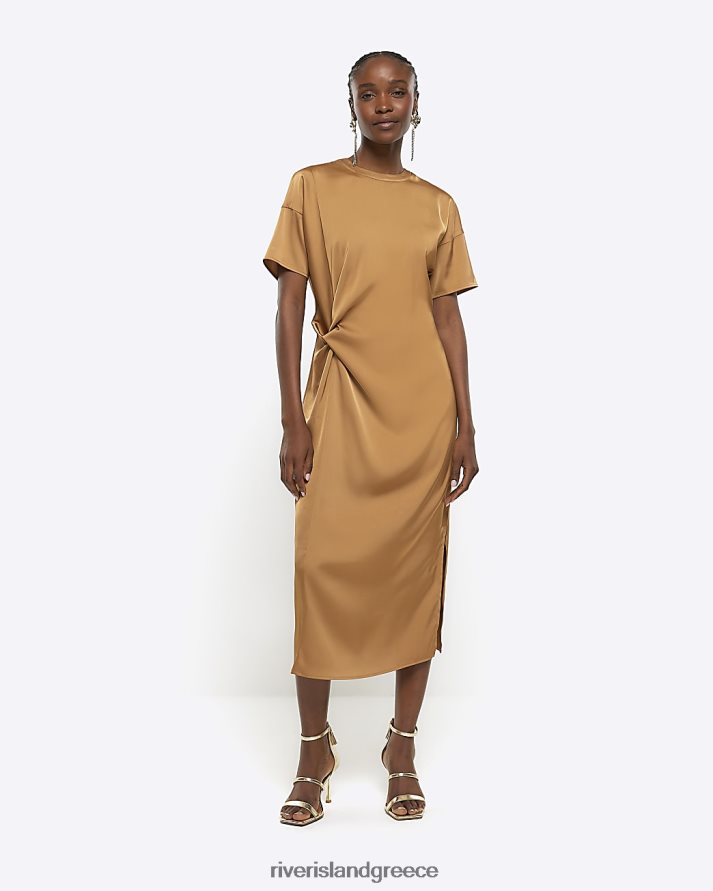 River Island ενδύματα μπεζ γυναίκες μίντι φόρεμα με λεπτομέρεια σατέν κόμπο B6N8X1328