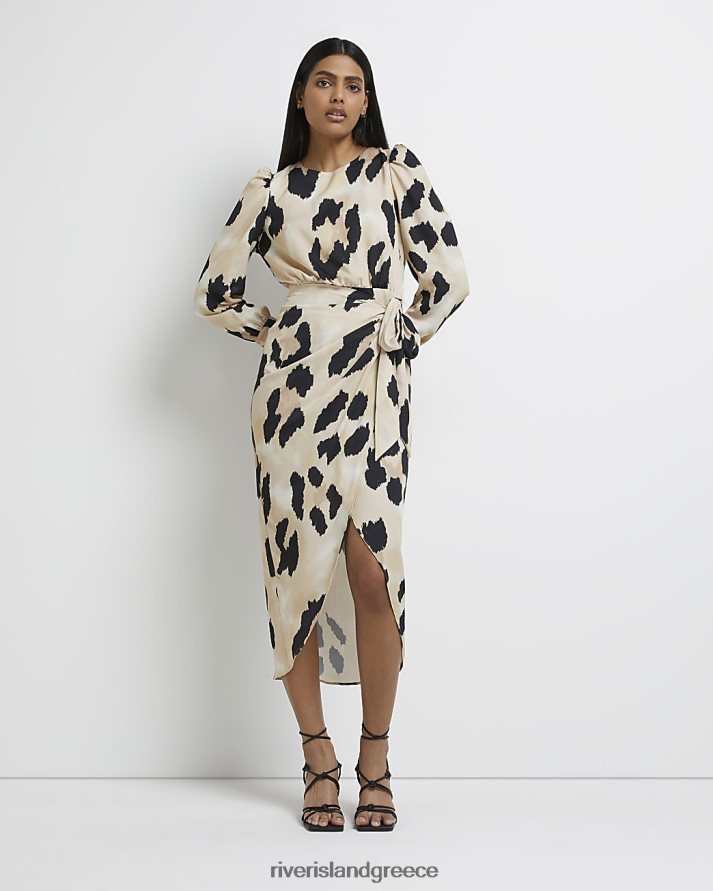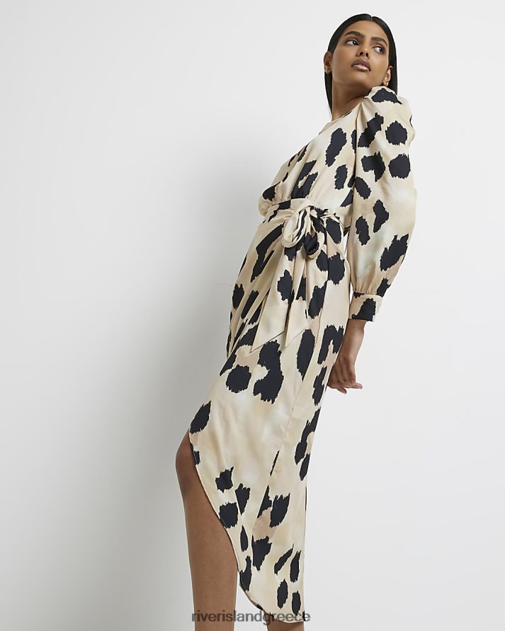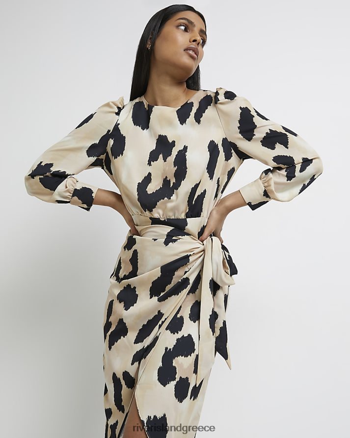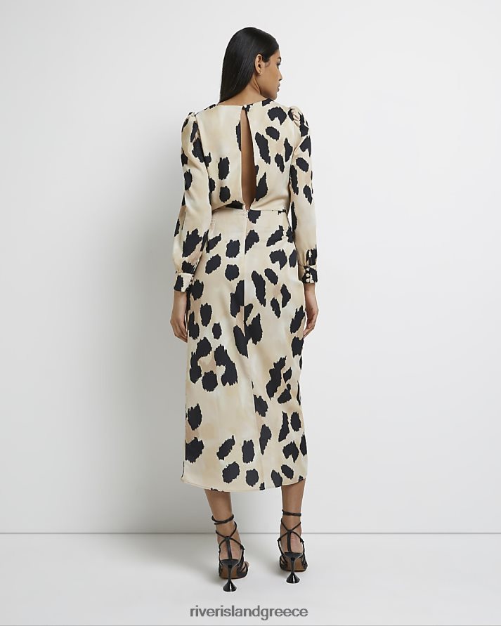 River Island ενδύματα μπεζ γυναίκες Μίντι φόρεμα με σατέν με στάμπα λεοπάρ B6N8X1493