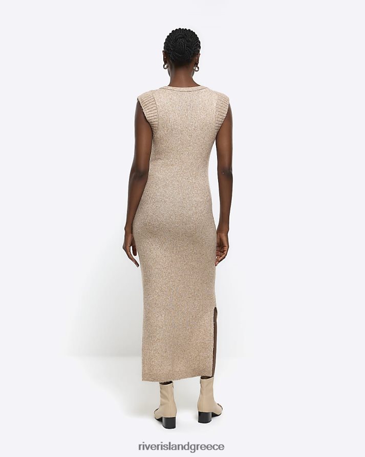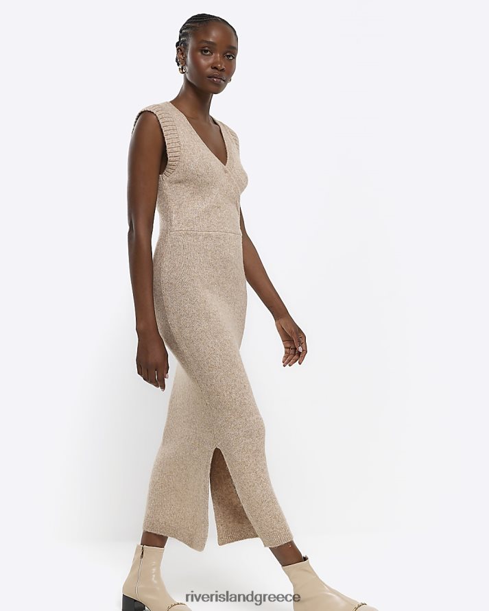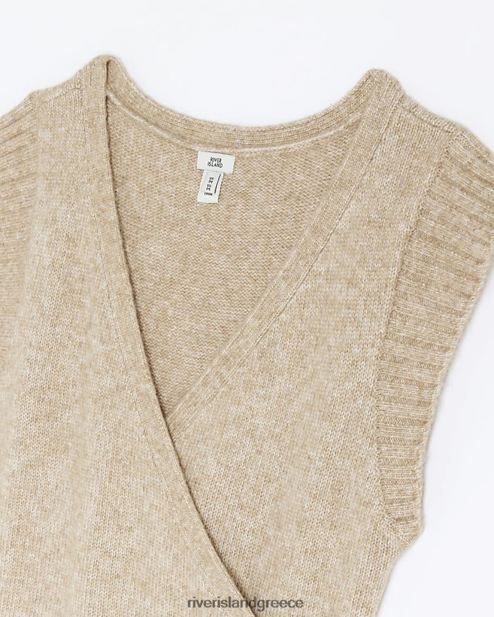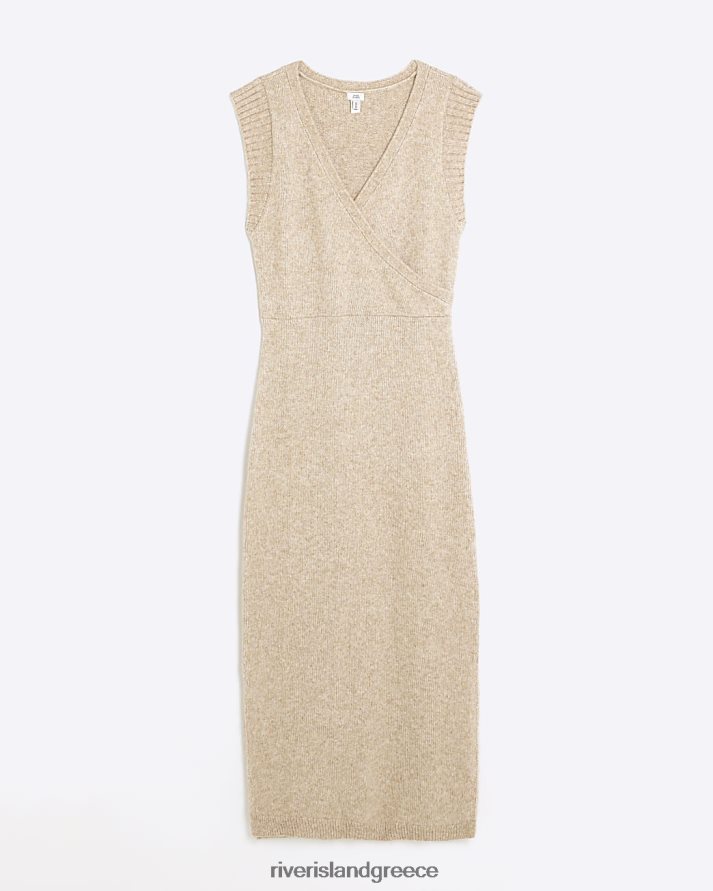 River Island ενδύματα μπεζ γυναίκες μίντι φόρεμα πλεκτό wrap jumper B6N8X4049