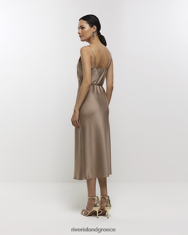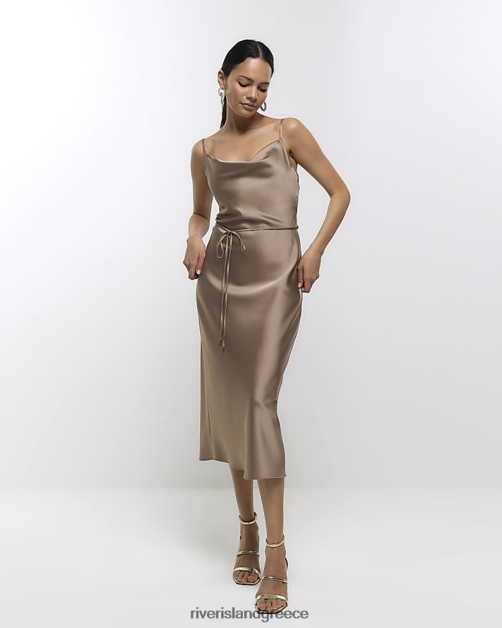 River Island ενδύματα μπεζ γυναίκες σατέν slip midi φόρεμα B6N8X1011