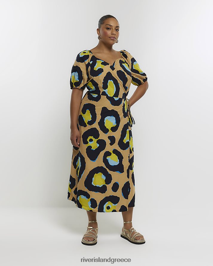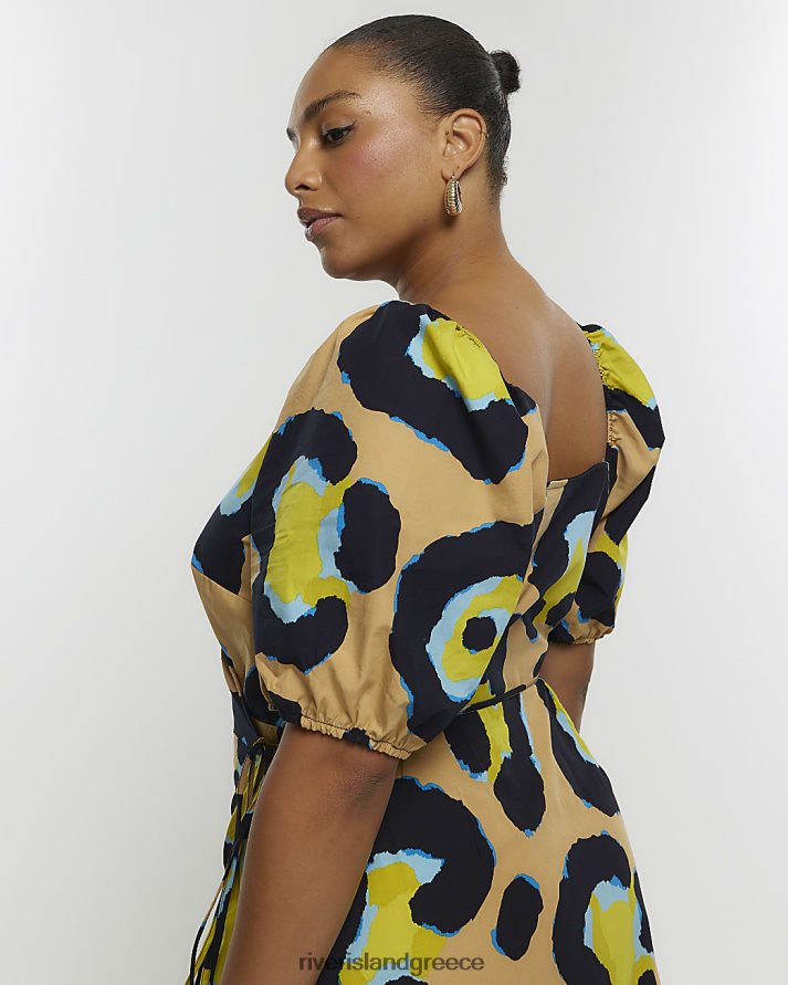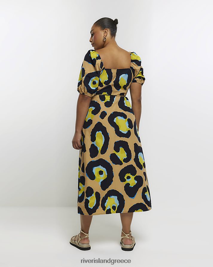 River Island ενδύματα μπεζ γυναίκες plus μίντι φόρεμα με εμπριμέ με εμπριμέ B6N8X5115