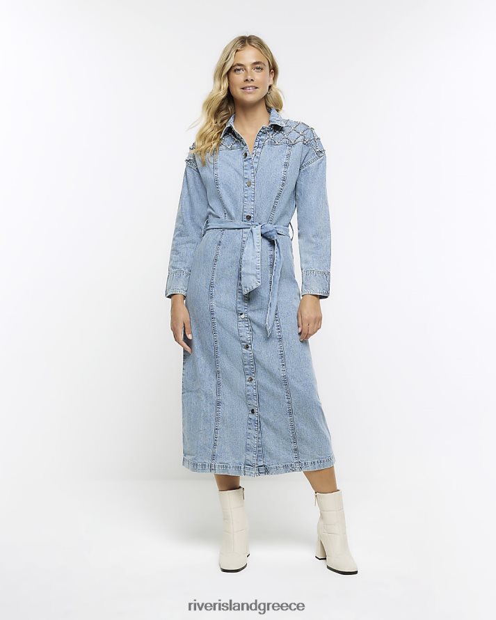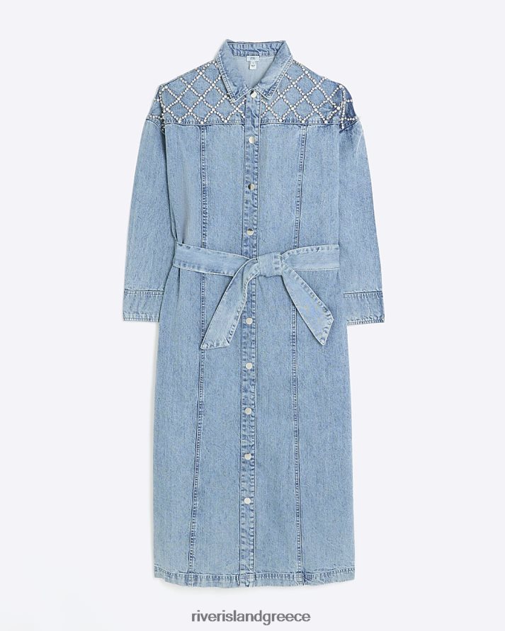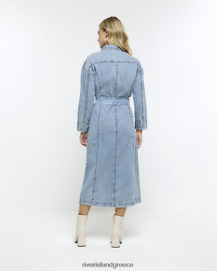 River Island ενδύματα μπλε γυναίκες Μίντι πουκάμισο με τζιν διακοσμημένο B6N8X4310