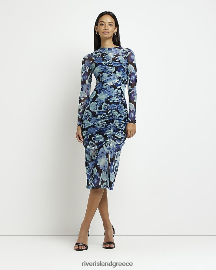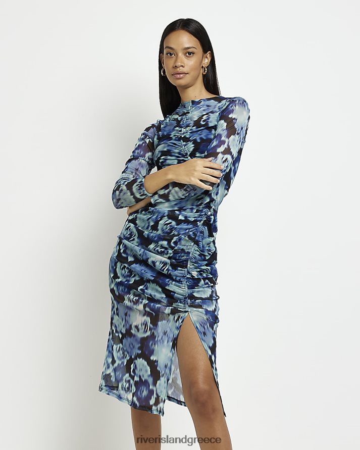 River Island ενδύματα μπλε γυναίκες Μίντι φόρεμα από διχτυωτό φλοράλ bodycon B6N8X2022