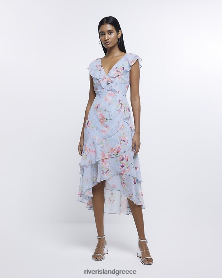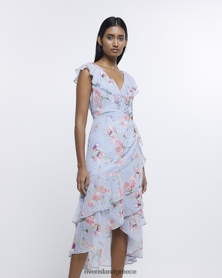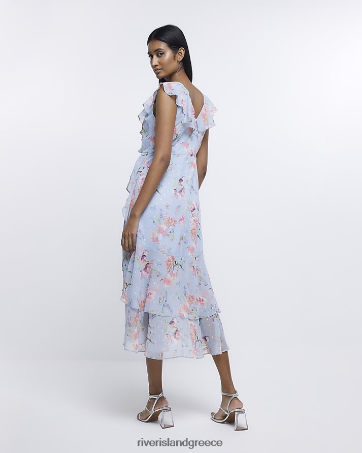 River Island ενδύματα μπλε γυναίκες Μίντι φόρεμα με λουλουδάτο σιφόν B6N8X4790
