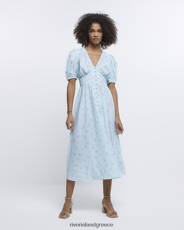 River Island ενδύματα μπλε γυναίκες Μίντι φόρεμα με λουλουδάτο τσάι B6N8X4858