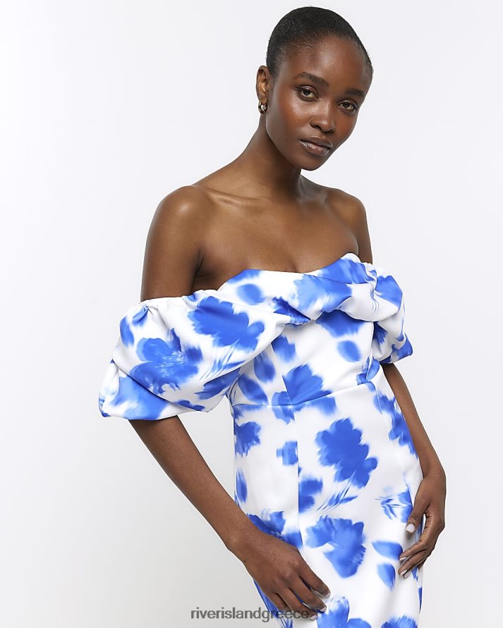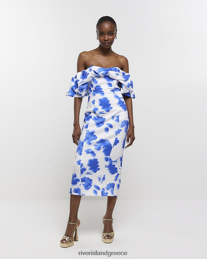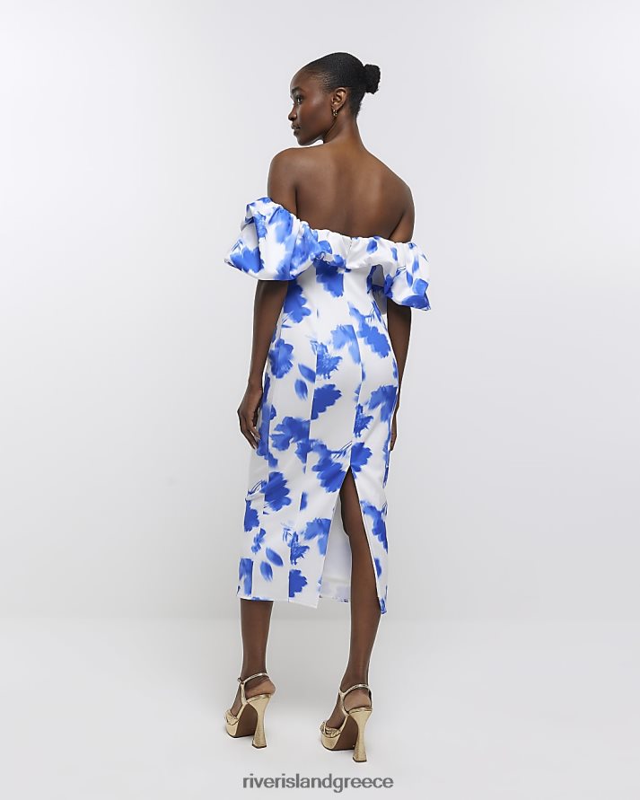 River Island ενδύματα μπλε γυναίκες Μίντι φόρεμα bardot print B6N8X1617