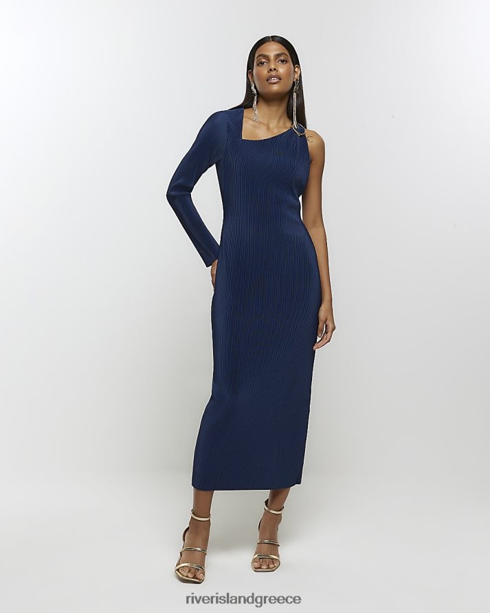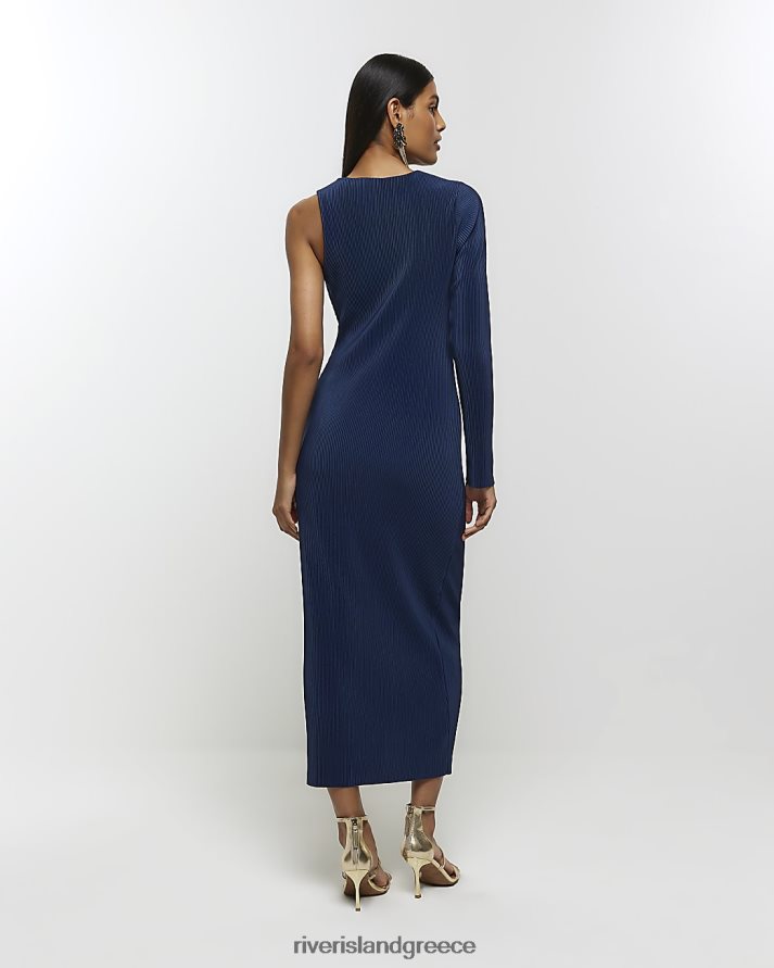 River Island ενδύματα μπλε γυναίκες Μίντι φόρεμα plisse μακρυμάνικο bodycon B6N8X463