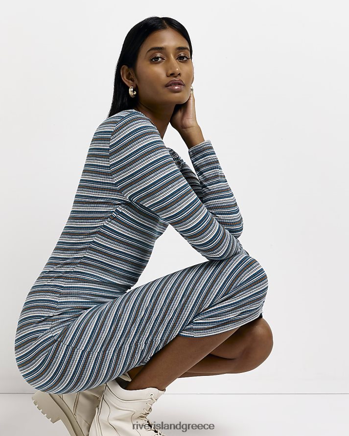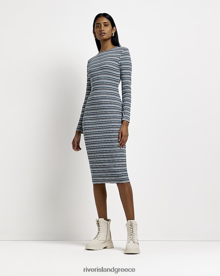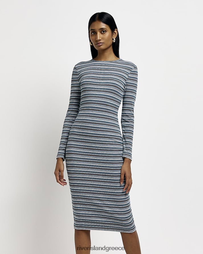River Island ενδύματα μπλε γυναίκες ριγέ ριγέ bodycon midi φόρεμα B6N8X4910