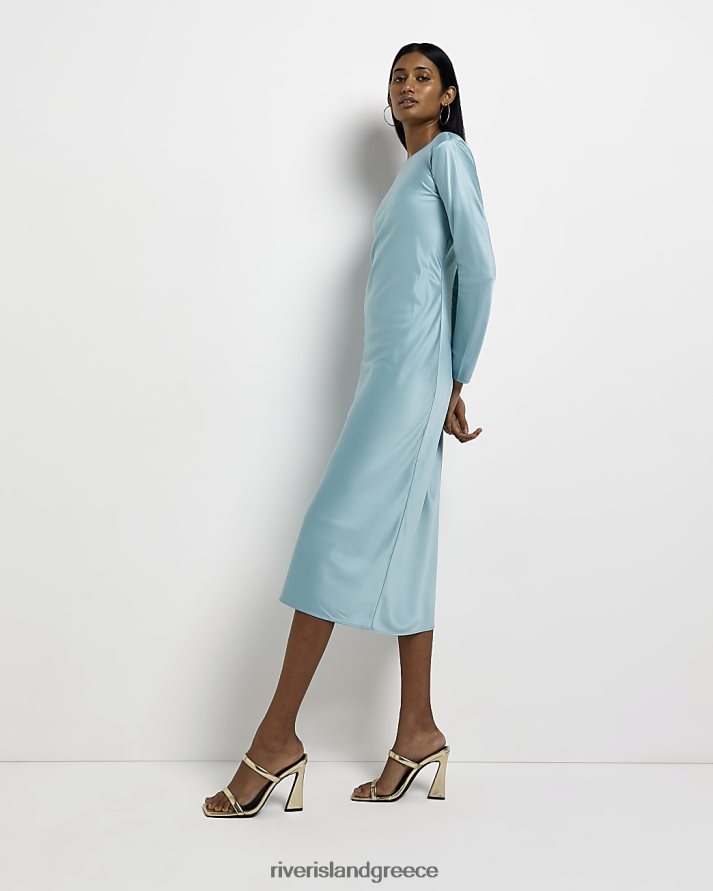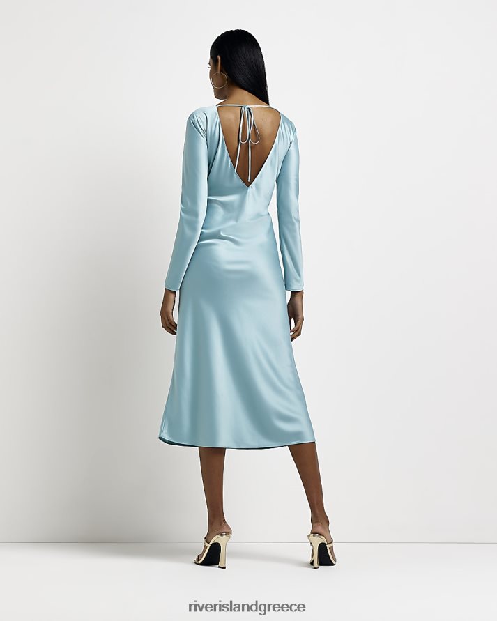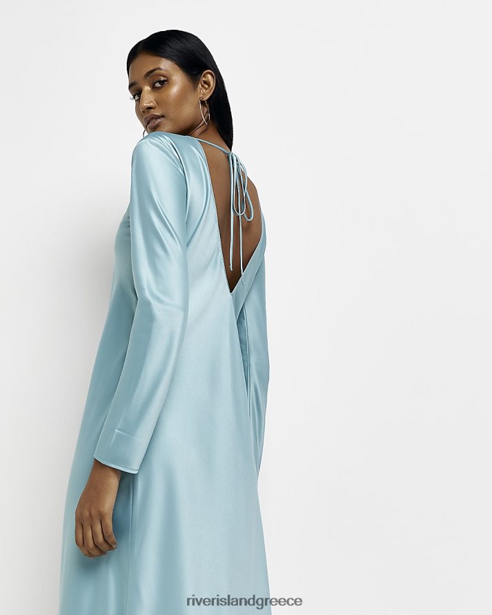 River Island ενδύματα μπλε γυναίκες σατέν μακρυμάνικο slip μίντι φόρεμα B6N8X2013