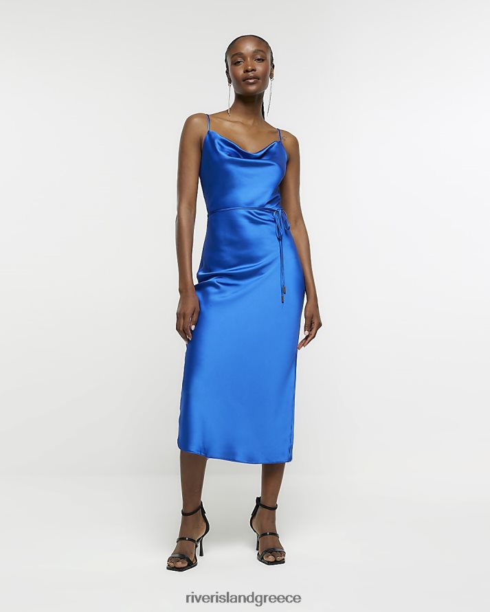 River Island ενδύματα μπλε γυναίκες σατέν slip midi φόρεμα B6N8X1012