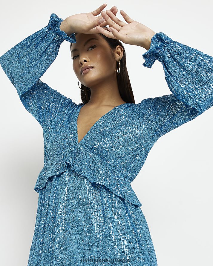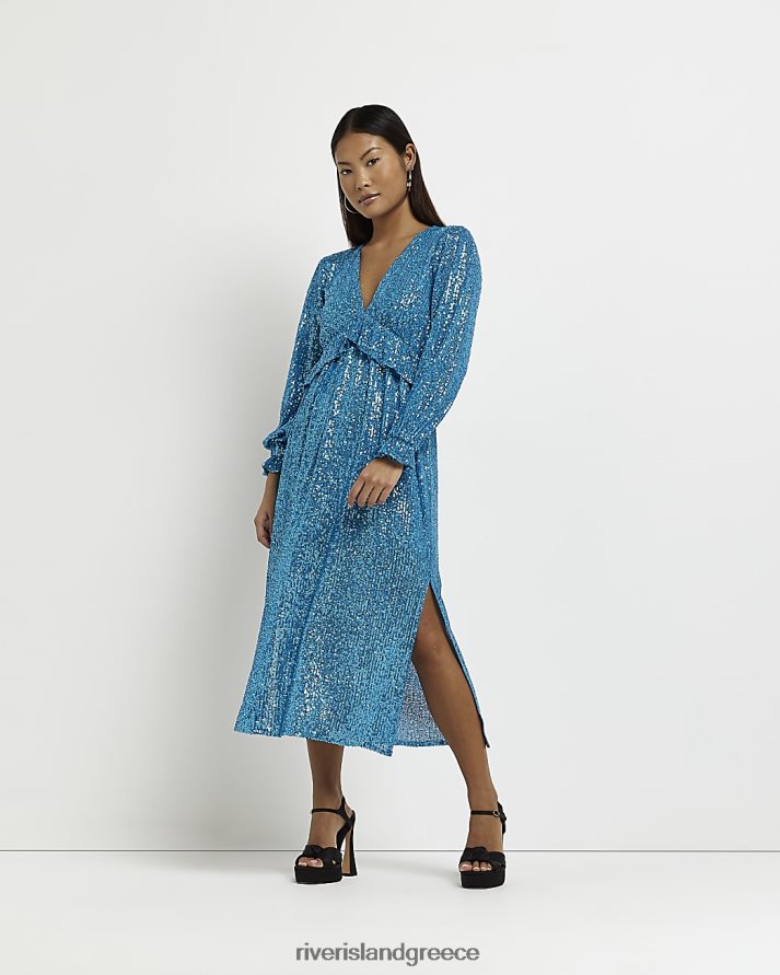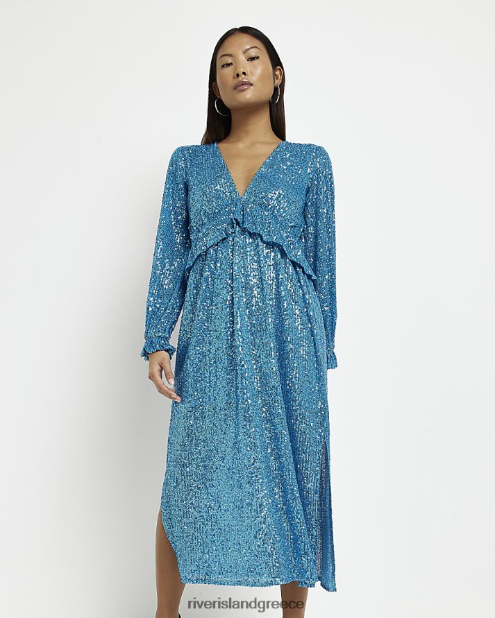 River Island ενδύματα μπλε γυναίκες midi φόρεμα με λεπτές παγιέτες B6N8X5344