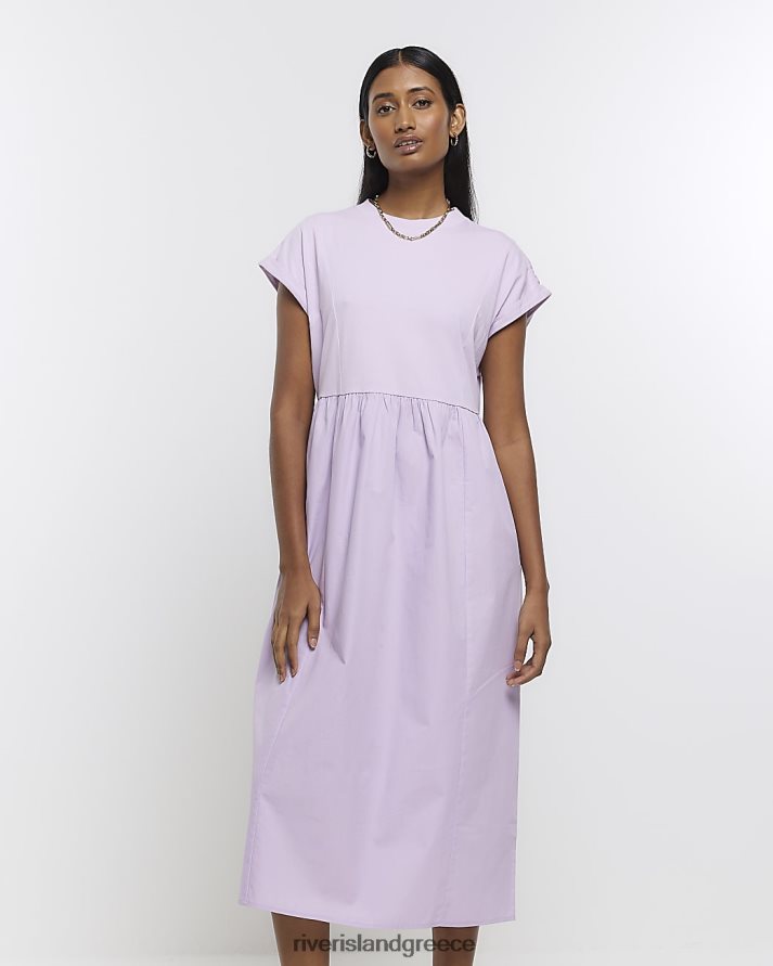 River Island ενδύματα μωβ γυναίκες Μίντι φόρεμα μπλουζάκι από ποπλίνα B6N8X1646