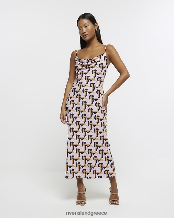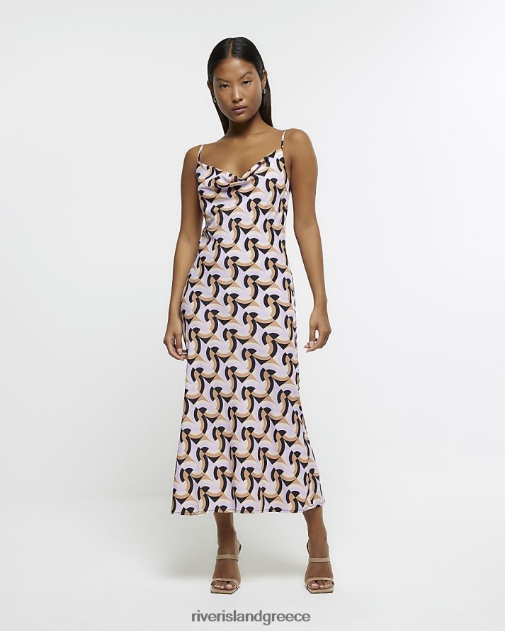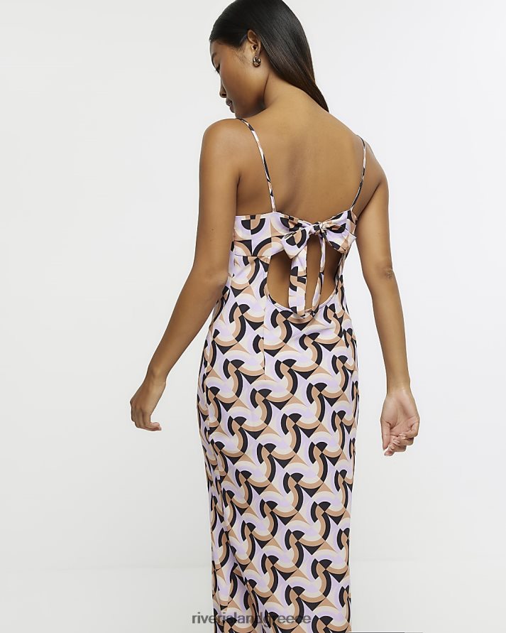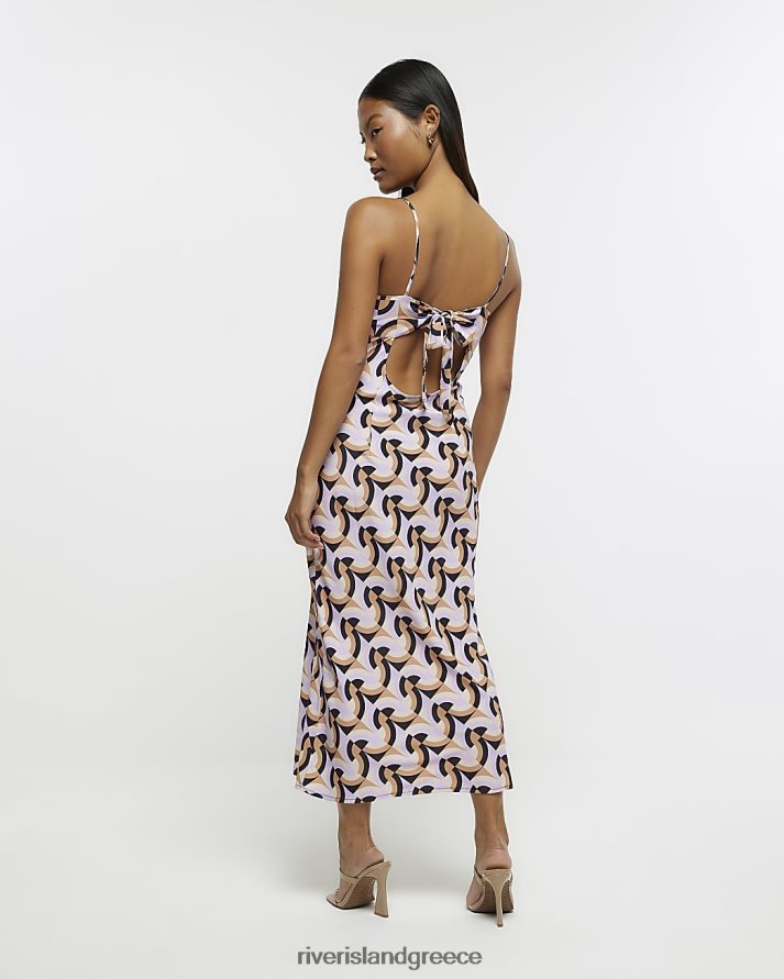 River Island ενδύματα μωβ γυναίκες μικροκαμωμένο γεωμετρικό φιόγκο μίντι φόρεμα B6N8X2286